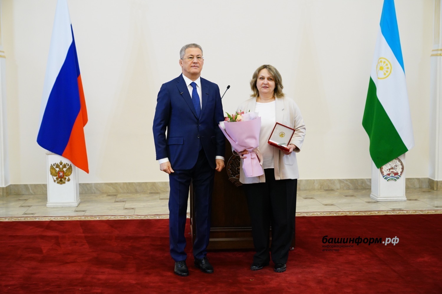Әйткәндәй, бөгөн коллегабыҙ ҙа Радий Хәбиров ҡулынан юғары награда алды. «Башинформ» мәғлүмәт агентлығының бильд-мөхәррире Татьяна Кадыкова «Башҡортостан Республикаһының атҡаҙанған матбуғат һәм киң мәғлүмәт хеҙмәткәре» тигән маҡтаулы исемгә лайыҡ булды.